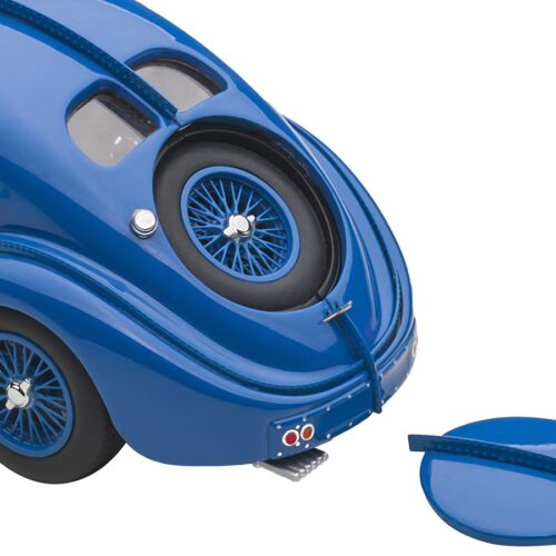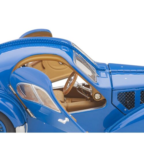 - Brand new 1/43 scale diecast car model of 1938 Bugatti Type 57SC Atlantic with Metal Wire-Spoke Wheels Blue die cast model car by Autoart.