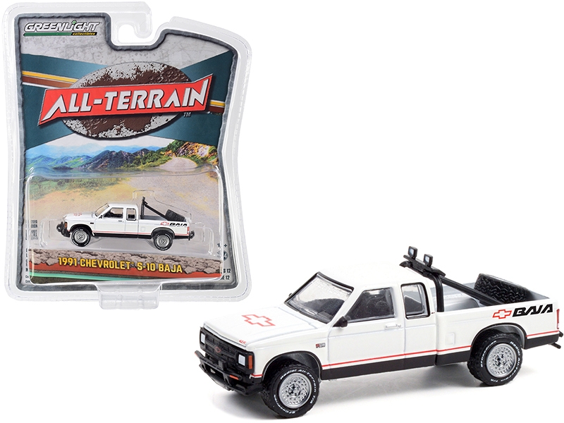 - Brand new 1/64 scale diecast car model of 1991 Chevrolet S-10 Baja Extended Cab Pickup Truck White with Graphics “All Terrain” Series 12 die cast model car by Greenlight.