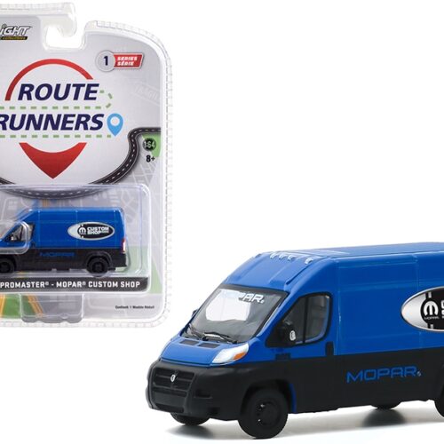 - Brand new 1/43 scale diecast car model of 2018 RAM ProMaster 2500 Cargo Van High Roof Blue and Black “MOPAR Custom Shop” die cast model car by Greenlight.