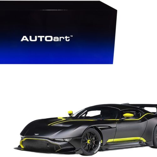 Aston Martin Vulcan Matt Black with Lime Green Stripes 1/18 Model Car by Autoart