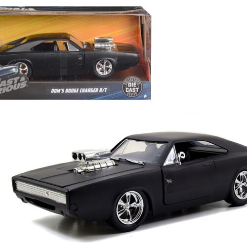 - Brand new 1/24 scale diecast car model of Dodge Charger R/T Black with Dom Diecast Figurine “Fast & Furious” Movie die cast model car by Jada.