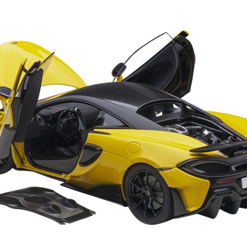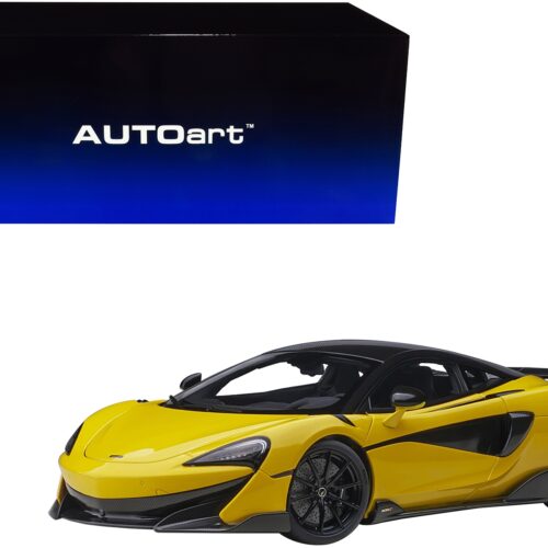 - Brand new 1/18 scale car model of Mclaren 600LT Myan Orange and Carbon model car by Autoart.